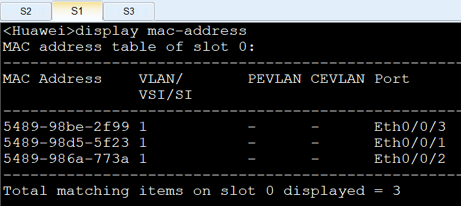 发现S1 S2 S3的MAC表已经被改变